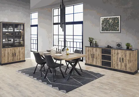 Salle à manger comprenant le bahut en 210 cm, l'argentier et la table allongeable en 180-235 cm